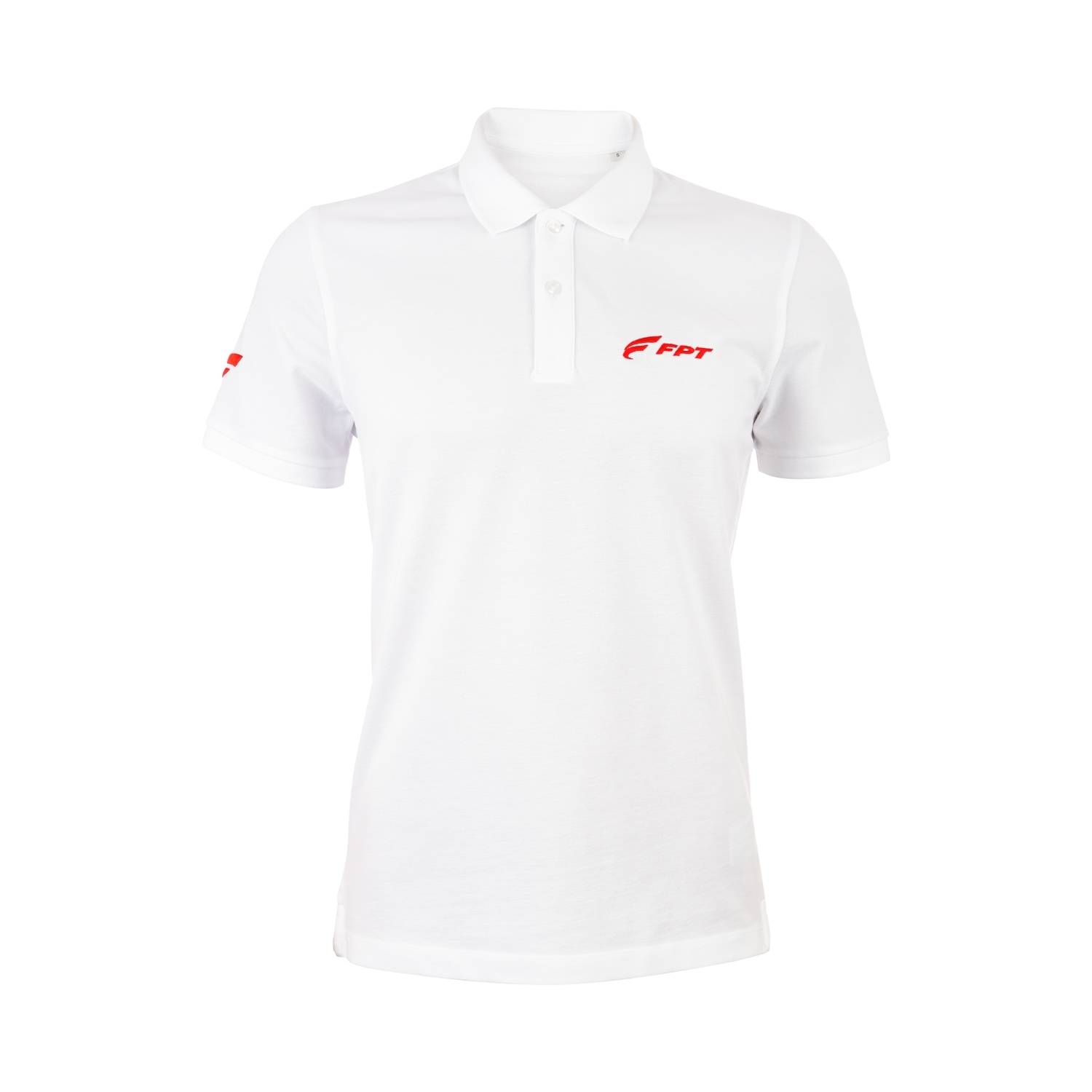 Ricamo del logo FPT sul lato sinistro del petto e un ulteriore ricamo sulla manica destra.
